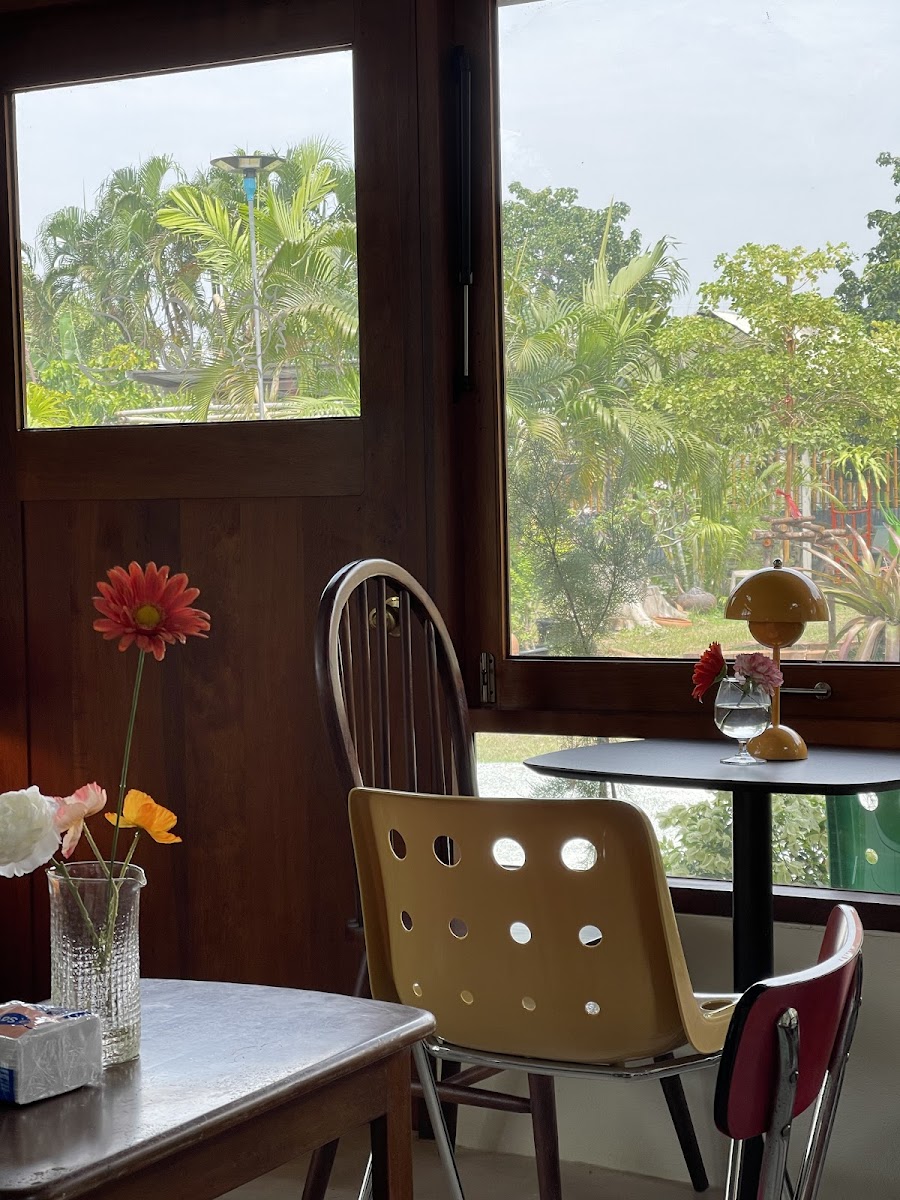 Upon arriving, you'll be greeted by a warm and inviting atmosphere that feels just like visiting a dear friend's home. The decor embraces a cozy vintage aesthetic, with warm wooden tables and a variety of chic seating options that beckon you to sit and stay awhile. The cafe is beautifully nestled among verdant trees and vibrant flower pots, creating a picturesque backdrop that is simply enchanting—ideal for those Instagram-worthy shots.
